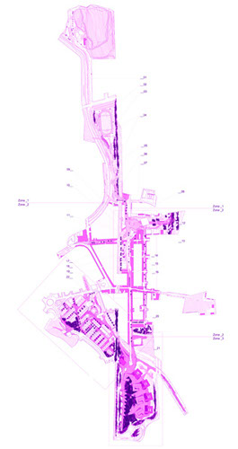 ...distinguiendo en su paso tres zonas. La zona 1_ abarca la zona industrial y una nueva urbanización con edificaciones de nueva planta. La zona 2_ es la parte central del paso del eje, en el que se desarrolla parte del comercio de la ciudad y en una trama urbana desordenada en cuento a usos del suelo, en ella se desarrolla la actividad industrial y vivienda. La zona 3_ es la destinada al proyecto residencial considerado existente para esta propuesta...
