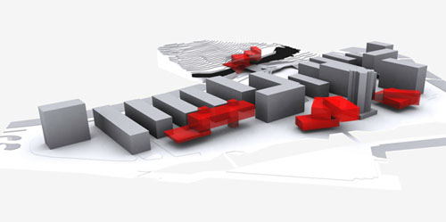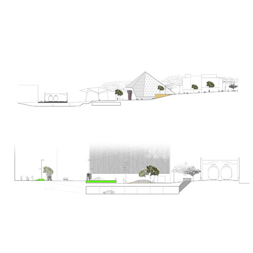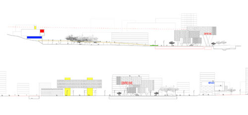 ... se desarrolla en relación a su entorno, con la influencia de los proyectos anteriores. De esta forma el esquema general de actuaciones se desarrolla bajo la direccionalidad del eje conector. El sector Goya se relaciona con el eje conector principal a través de un eje perpendicular a este, quedando vinculado este último proyecto con los anteriores. Se han incluido en el proyecto la propuesta de equipamiento de: