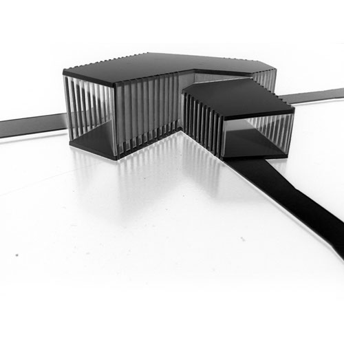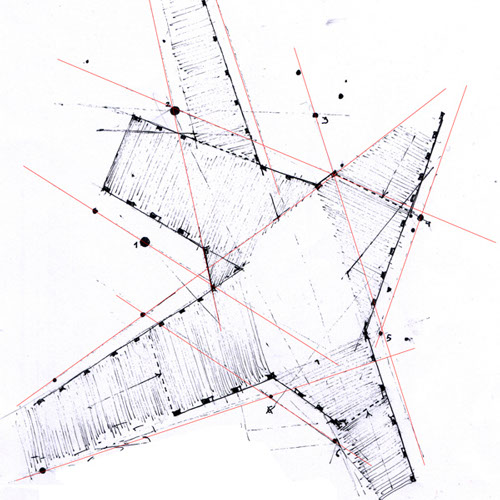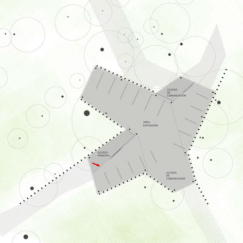 La forma parte de relacionar cinco direcciones aunque solo posee cuatro cuerpos que continúan con cuatro de las cinco: tres direcciones poseen su propio brazo en el pabellón, otro sigue una dirección visual hacia estanque existente, y la última relaciona un espacio no aprovechado, como es la zona del puente pasarela.
