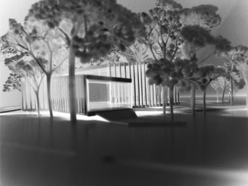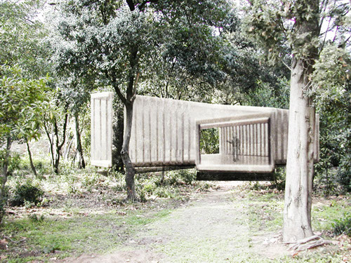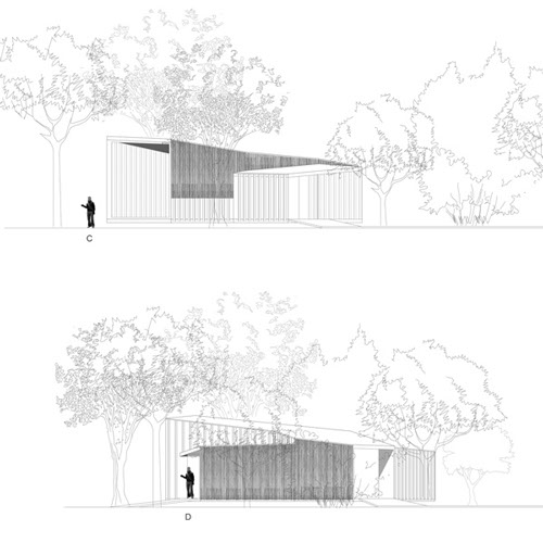 El proyecto se desarrolla en el jardín posterior de la Eina, situado en el interior del pequeño bosque en el margen derecho. El pabellón se coloca en un claro que está situado en el punto de intersección de dos pasos diagonalizados de comunicación, dando al proyecto una...