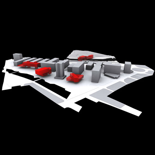 ... se desarrolla en relación a su entorno, con la influencia de los proyectos anteriores. De esta forma el esquema general de actuaciones se desarrolla bajo la direccionalidad del eje conector. El sector Goya se relaciona con el eje conector principal a través de un eje perpendicular a este, quedando vinculado este último proyecto con los anteriores. Se han incluido en el proyecto la propuesta de equipamiento de: