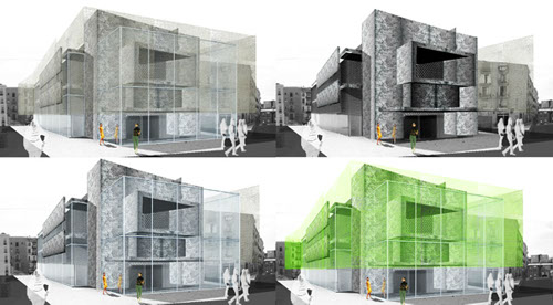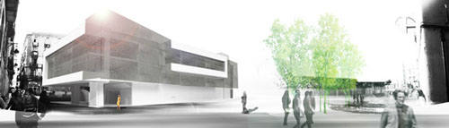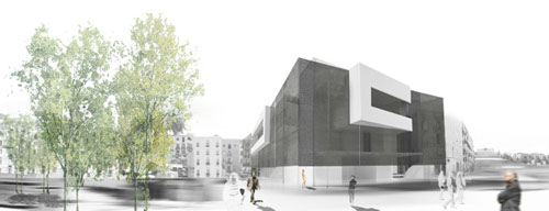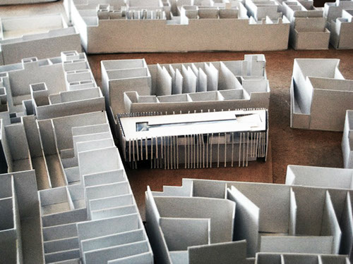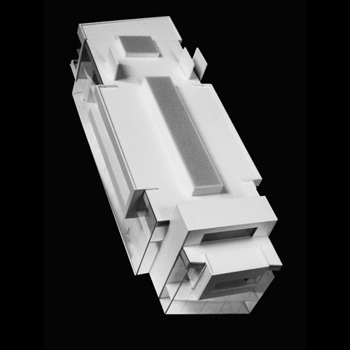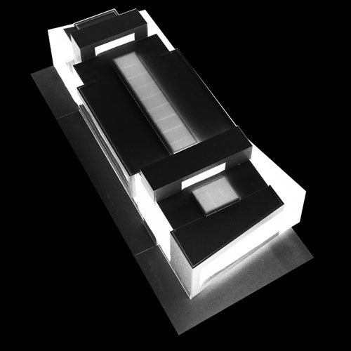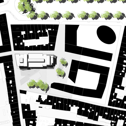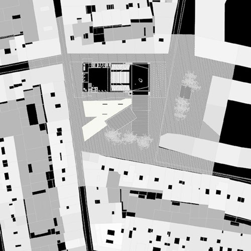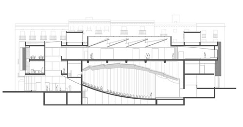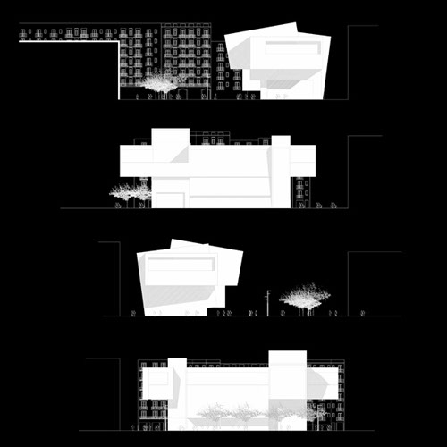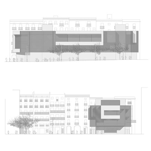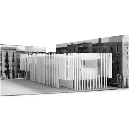 En uno de los diversos y sucesivos vacíos que se generan en el seno de un centro histórico se halla la oportunidad de ubicar una escuela de música que por su carga funcional rebasaría el limitado uso del barrio. Este sería el caso de la Escuela de Música del Raval. En un contexto de sedimentación y transcurso histórico la escuela se formaliza reconociendo las alineaciones y gestuando con el fin de actuar como elemento presencial de la plaza que lo acompaña, aún sin la voluntad de sobreponerse al pintoresco ritmo de fachadas existentes.