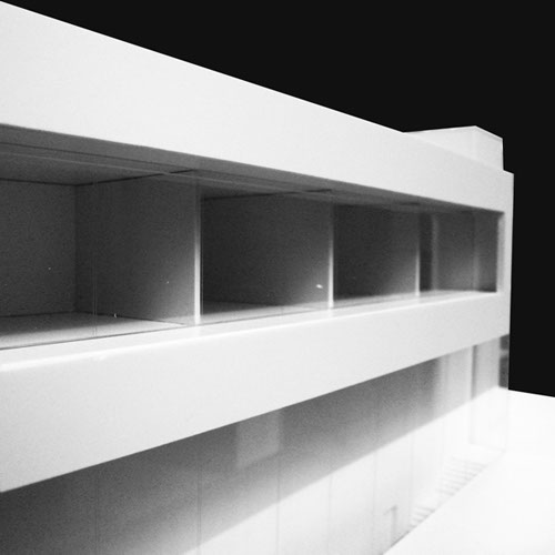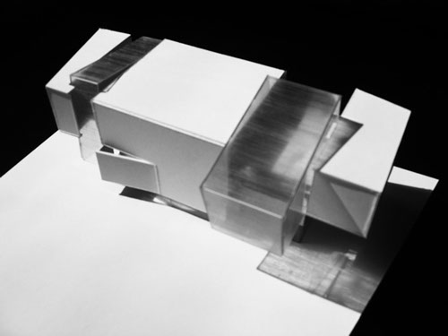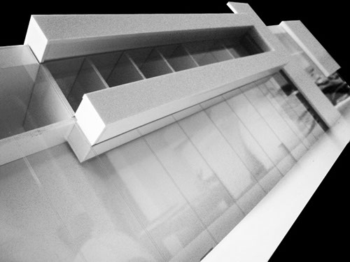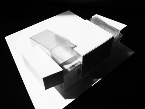 En el angosto cruce de la calle St. Pau con la calle Espalter, y sobre una cafetería que mostrándose al exterior revitaliza la dinámica del contexto, se encuentra otro volumen. Éste cuelga a modo de prolongación del cuerpo docente y alberga la administración así como la biblioteca en su nivel superior. De esta manera el programa queda sedimentado según la proximidad de su uso al incesante movimiento urbano y en el mismo criterio también se abre a los ojos del contexto. El resultado: un edificio sincero al mostrarse, neutro por su continuidad, activo en el interior, participativo en el exterior, luminoso de día y luminoso de noche, difuminado en el contexto, variante de aspecto al transcurso del tiempo, y por último, de composición y distribución sencilla.