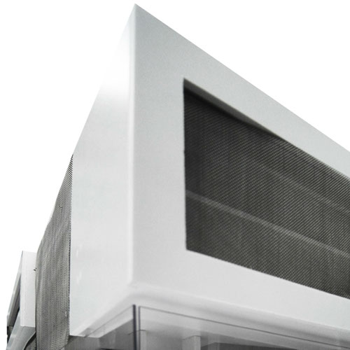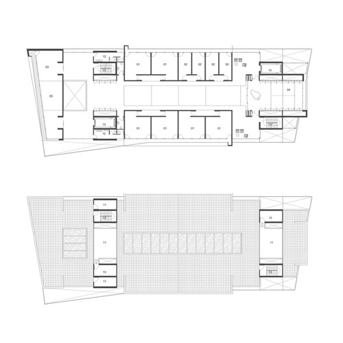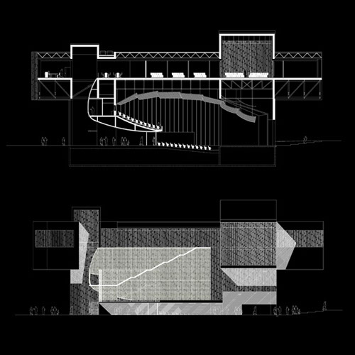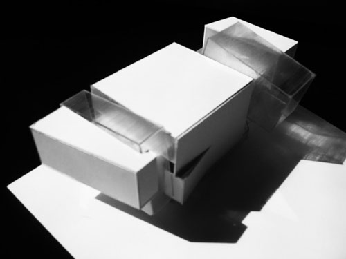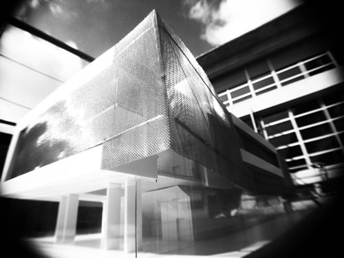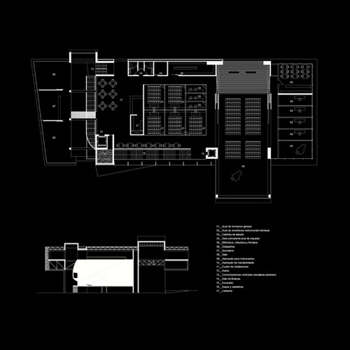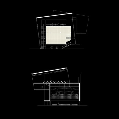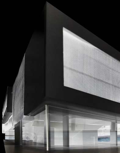 El edificio es sincero al mostrarse. Posee una piel invisible que envuelve un vacío fluctuante en su interior. La ligereza del espacio se contiene por la densidad del área docente, que desde su posición pesa sobre el frágil zócalo vidriado a doble altura. Sin embargo, este último cuerpo se oculta tras un velo metálico que lo insinúa en la medida que la reclusión del uso así como la orientación lo establece.