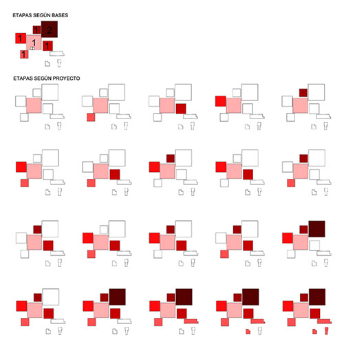 Al repartir el programa en seis módulos, la posibilidad de incorporar etapas intermedias en el proceso de construcción facilita el crecimiento gradual del edificio.