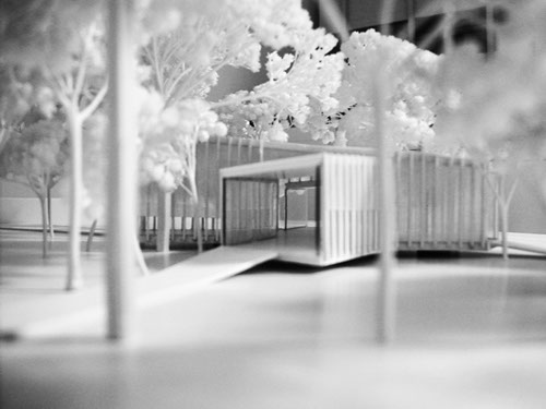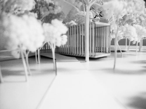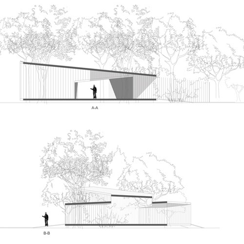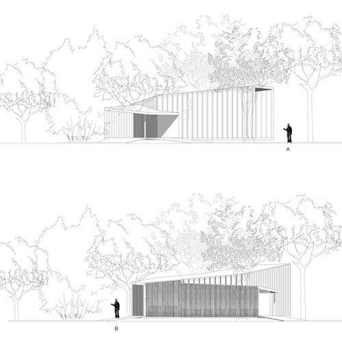 El proyecto se desarrolla en el jardín posterior de la Eina, situado en el interior del pequeño bosque en el margen derecho. El pabellón se coloca en un claro que está situado en el punto de intersección de dos pasos diagonalizados de comunicación, dando al proyecto una...