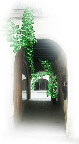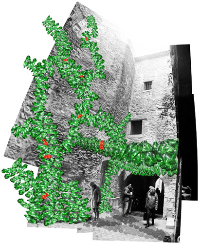 Esta planta trepadora pese a ser artificial, dispone de los mismos elementos que una natural. Un elemento para trepar (alambre trenzado), elemento captador de luz (botella de plástico verde), y la flor (botella roja ó flor Peniculata). De esta forma se adapta a el espacio del patio, incluso a el de la tienda anexa, de forma que se apropia de muros, pavimento, barana....