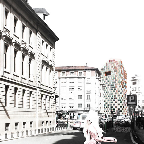 4_"Nuevas referencias urbanas". Proponiendo uno de los volúmenes como torre de 82m, siendo una Referencia Visual en la ciudad, siendo un nuevo frente en la calle Teobaldos y actuando de umbral entre esta y el solar con paso libre en planta baja; Una plaza-calle como Referencia Espacio Público, que cierra el sistema de espacios públicos entre el eje de Carlos III (Plaza del Castillo y Conde de Rodezno), el eje N.Villoslada-Teobaldos (Plaza de los Fueros y la nueva Plaza), y su intersección (Plaza de Merindades); El Centro Cívico se convierte en Referencia Espacial en la nueva plaza, umbral entre el solar y el paseo de las Murallas, con paso libre en planta baja.